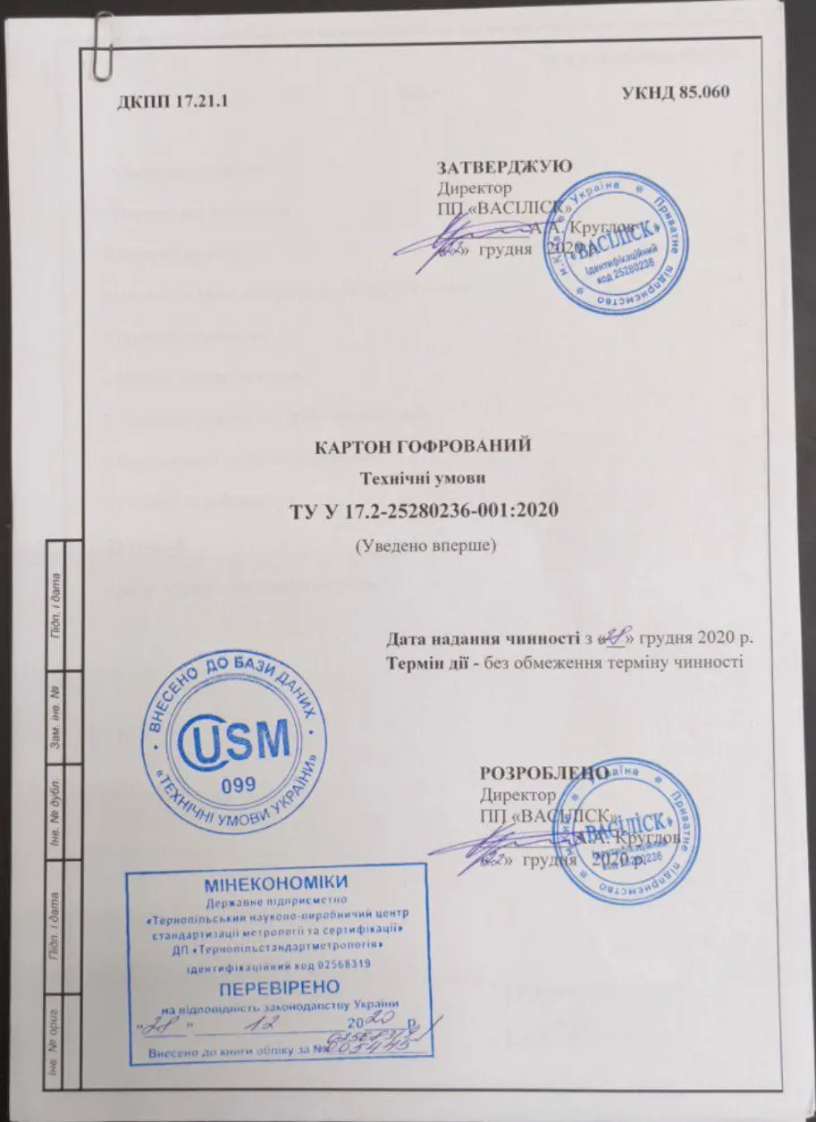 Произведено согласно ТУ У 17.2-25280236-001:2020
